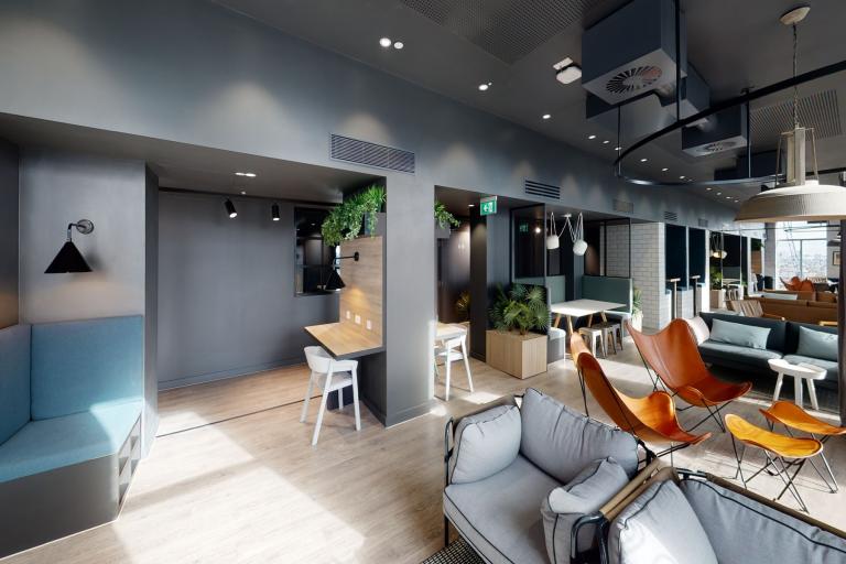 Sky lounge en la última planta con vistas panorámicas de la ciudad